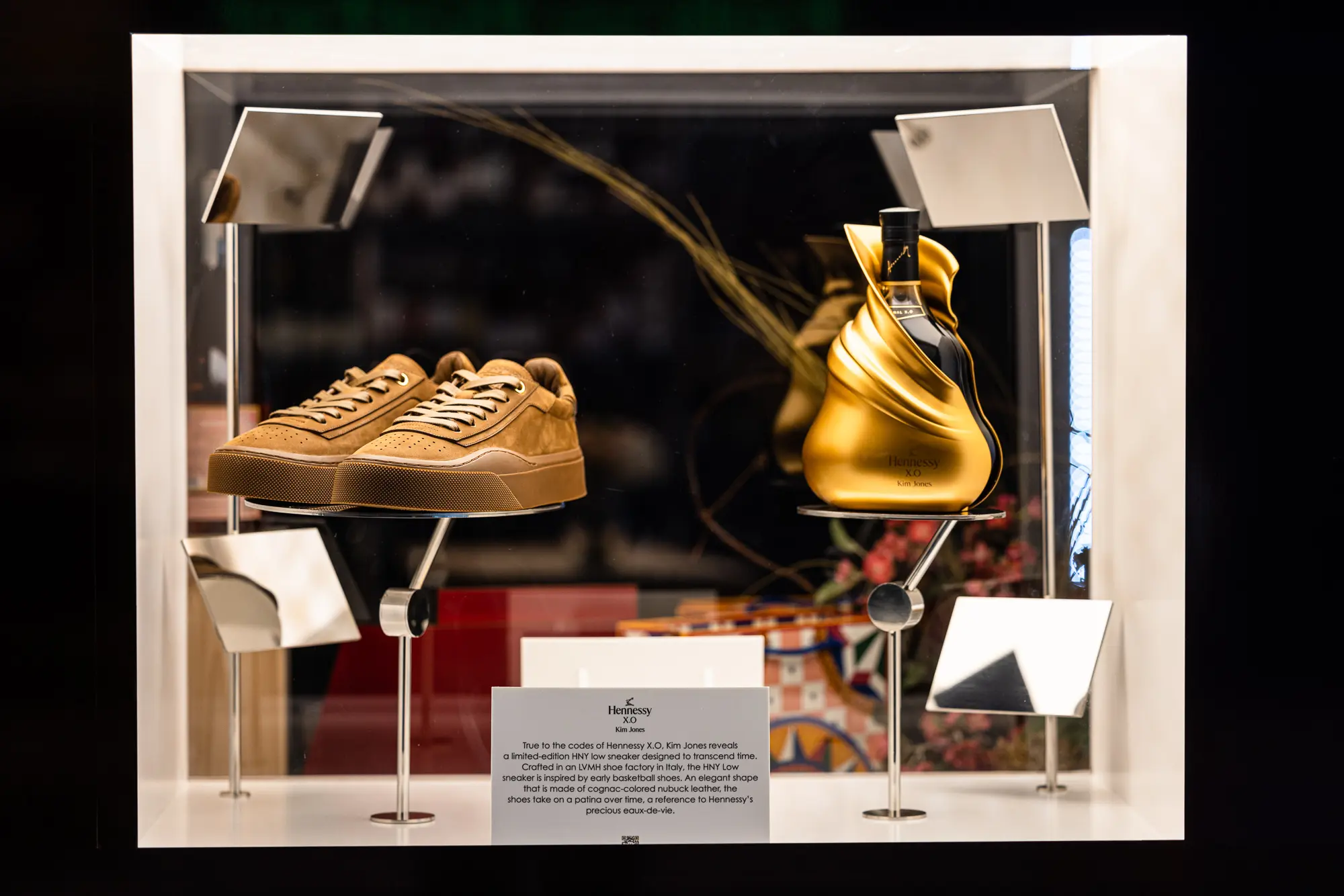 Collection Showcase: Featured a meticulously designed pair of sneakers and two special edition decanters (Hennessy X.O Masterpiece and Hennessy X.O Limited Edition) as central elements of the display.